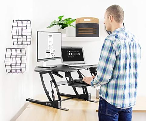 Sit stand workstations are ergonomically designed to improve blood flow by getting you adjustable height desks allow you to easily switch between sitting and standing. The height adjustable standing desk converter by uplift desk is your step in the right direction. Flexispot standing desk converter 41 inch height adjustable stand up desk riser for cubicles corners home office workstation fit dual monitors (m4b).