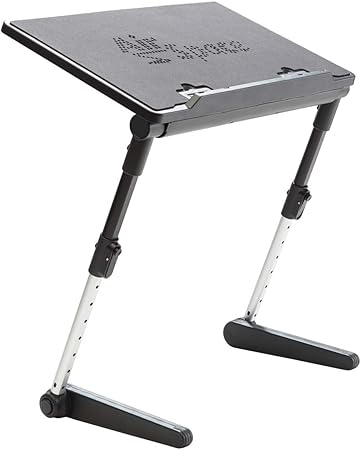 Air Space Adjustable Desk. The secret is the custom fit adjusters that allow you to position the desk exactly the where you want it. Lets you use your device in total comfort, at the perfect angle.
