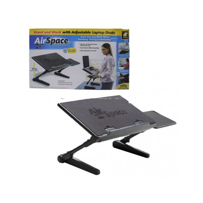 Airspace Adjustable Laptop Desk. Lets you use your device in total comfort, at the perfect angle. The as seen on tv air space laptop desk offers a great alternative to the modern day desk.