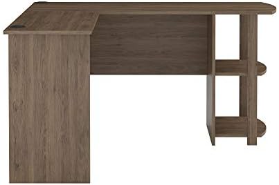 Altra Dakota L Shaped Desk. It has two bookshelves you can use to put whatever office material you need. Two open shelves on the side of the desk provide a perfect home for your binders and books, but keeps them within easy reach.