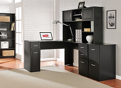 Ameriwood Chadwick 58 Desk Black 9305096. Open leg bases are constructed of durable metal and finished with a protective black. 30h x 58.5w x 58.5d.