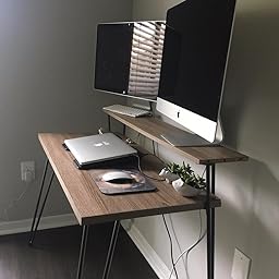 Ameriwood home haven retro computer desk with riser, distressed gray oak. Metal hairpin legs and laminated particle board top. I am very pleased with ameriwood.