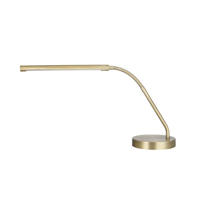 Antique desk lamp with cast iron base, brass bending arm and metal shade.
