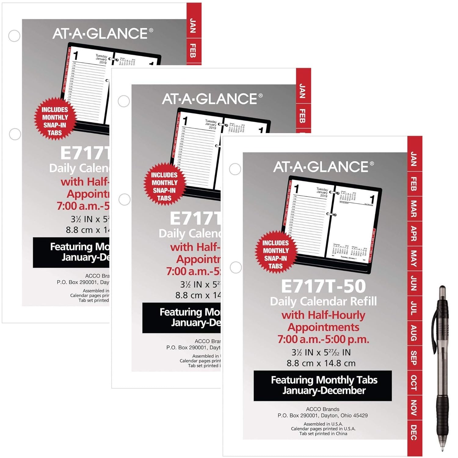 At A Glance Desk Calendar Refill 2019. Weekdays cover a two page spread, while weekends are combined. Left page is ruled for neat plans, while the right page is unruled for open use.