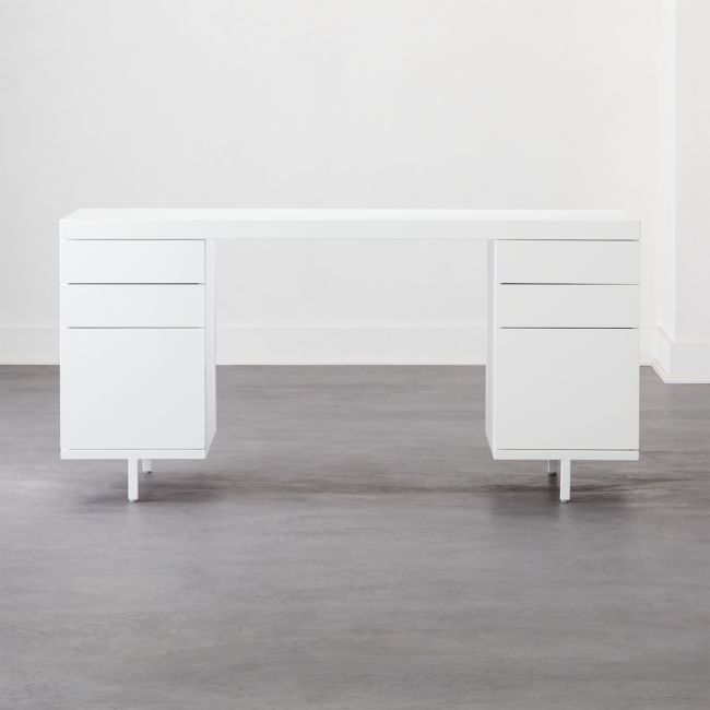 Metal geometric base in brushed nickel. Get user reviews on all home office products. Adjustable levelers keep the desk balanced on uneven surfaces and protect flooring. With three drawers lined with walnut veneer.