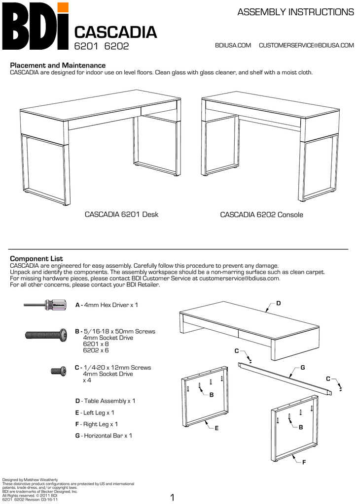 Bdi Cascadia Desk. Ideally sized for a compact home office, the cascadia 6201 desk features a clean, modern design with a smooth hardwood veneer surface, along with a reversible keyboard and storage drawer. Cascadia indoor furnishing pdf manual download.