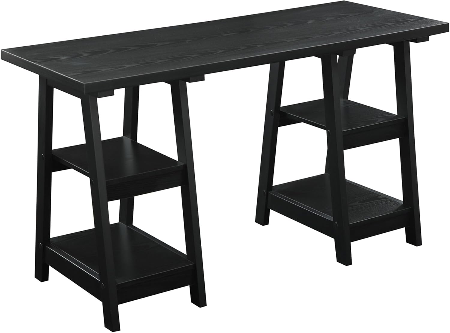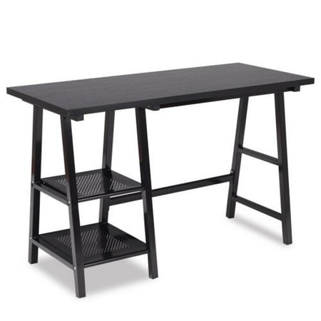 Black Trestle Desk. This beautiful writing desk features elegant carved trestle bases. The contemporary workshop trestle desk provides practical design for everyday use.