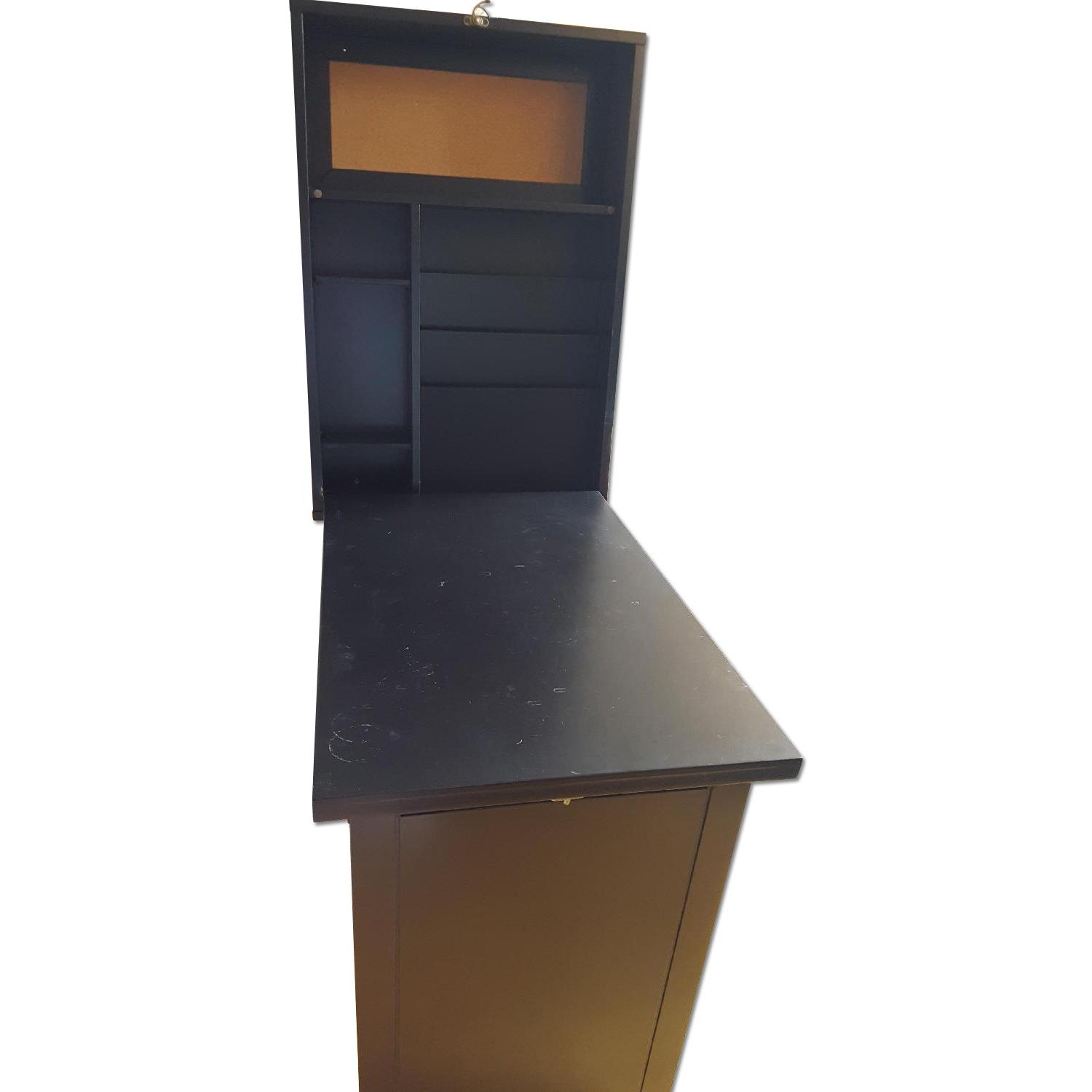 Convertible Wall Mounted Desk. If you are speaking of the very front of the desk when it is mounted to wall and closed, that front area is 22 in width and 32 tall. The wall mounted desk folds out to provide ample space for working, and folds up just as easily.