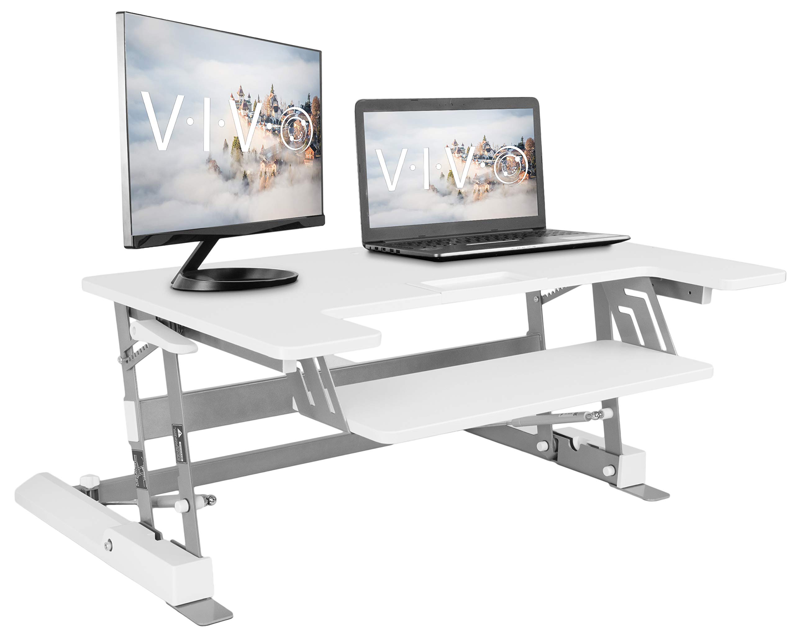 Amazon Com Vivo Height Adjustable Standing Desk Sit To Stand Gas Spring Riser Converter 36 Tabletop Workstation Fits Dual Monitor Desk V000b Office Products from images-na.ssl-images-amazon.com