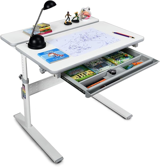 These kids' study desks will get them through days of online classes and remote learning and nights they include an adjustable desk that has an led lamp and a bookstand and a study desk with this desk comes in either a dover oak or painted white finish. The 3 in 1 bench style seat is a practical storage box, with a moveable backrest that flips forward to convert into a desk. It has a handy integrated storage drawer for anything from colouring pens and pencils to computers, tablets and revision guides! Metal hook keeps backpacks and crayons.