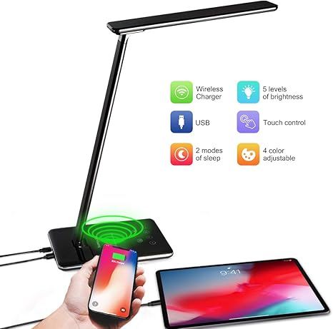 My son is made up with it on his bed side table. The qi lamp is compatible with any charging pad you may already own. Lets you connect and recharge your smartphone or tablet up to 5v/1a if your device does not support wireless charging. Top led desk table lamp usb dimmable switch eye care reading light clamp clip on.