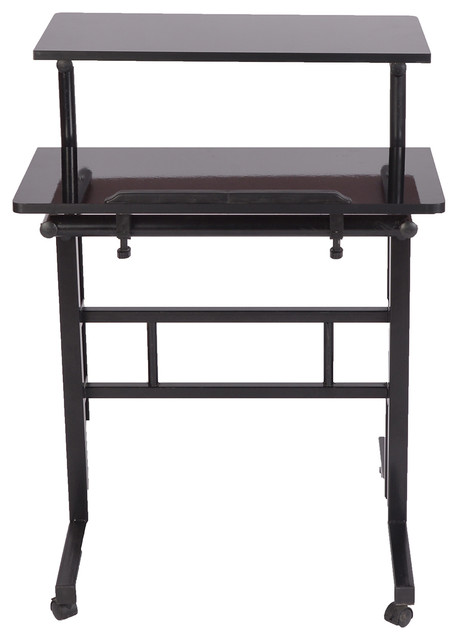 Mind Reader Standing Desk. Portability with any desk is a luxury to have and what makes the mind reader 2 tier sit and stand desk one of the best on the market. Hello theresa, yes the sit and stand desk comes with a cpu stand like the pictures shown.