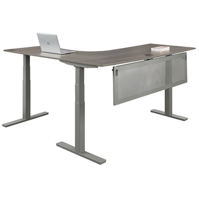 As well as two center drawers that feature flip down fronts to accommodate a keyboard. Steal the show in any office or studio space with the nbf signature series rivet desks. Surface features one wire management hole.standing desk is constructed of rugged engineered wood with a rich laminate finish, complemented by a sturdy steel frame with a brushed nickel paint finish.