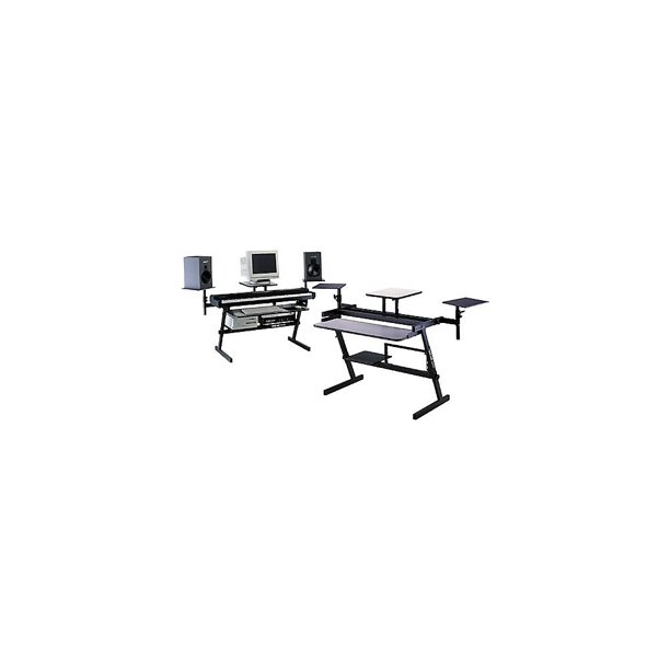 The quiklok z600 is a dual level project desk system with cherry tops and 8u rack holder.
