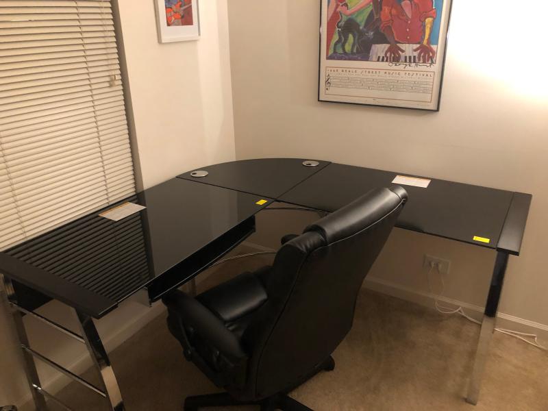 Computer desk deal by office depot offers realspace mezza l shaped glass computer desk black/chrome in $169.99 with free shipping.