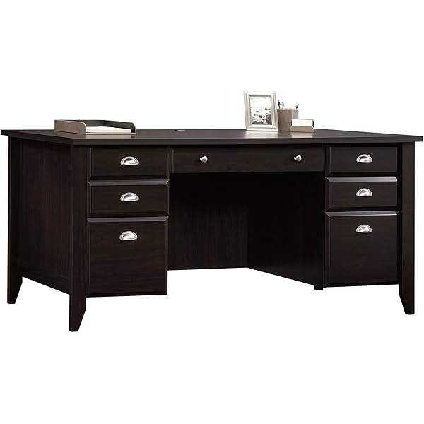 Sauder 409042 Edge Water Executive Desk. Shop our affordable collection of office desks and furniture for your space. It offers a large, spacious tabletop for your laptop and other office essentials.