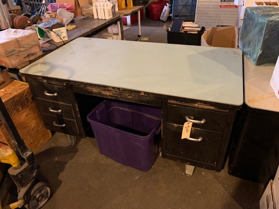Shaw Walker Tanker Desk. 1940s shaw walker steel file cabinet with faux wood finish and brass hardware polished to a shine. Shown here is a shaw walker 60 brushed steel tanker desk currently in brushed steel finish with wood grain formica top;