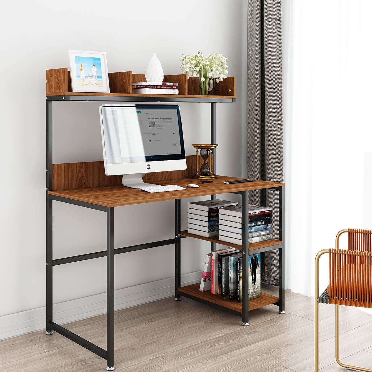 Sales For Tribesigns Computer Desk With Hutch And Bookshelf 47 Home Office Desk With Space Saving Design For Small Spaces Retro Brown 47 Desk With Hutch from images.prod.meredith.com