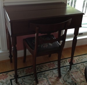 A spinet desk is an antique desk with an exterior shape similar to a writing table, but slightly higher and is fitted 1915 to 1920 antique spinet writing desk.