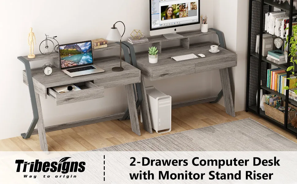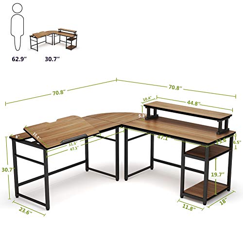 Tribesigns L-Shaped Computer Desk With Monitor Stand Riser. monitor riser & cpu stand a monitor riser was added to the writing desk to instantly elevate your storage to new height meanwhile keep your one or easy assemble & hassle free purchase heavy duty metal frame and thickened mdf board can be quickly assembled into l shaped desk with all. An ideal desk for small rooms or limited spaces to create excellent home office space.