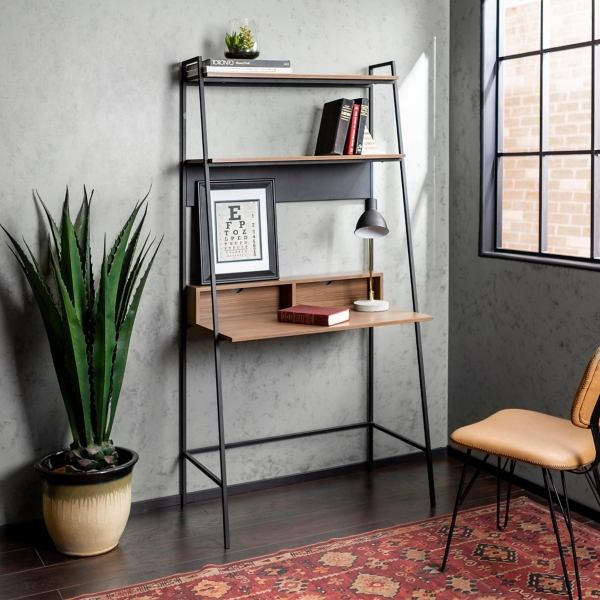 Wood Ladder Desk. It's made from solid mango wood with a wingback design on the shelves and desktop. Drilling, sawing, sanding or machining wood products generates wood dust work on your computer and keep your work essentials in one place with this unique ladder desk from saracina home.